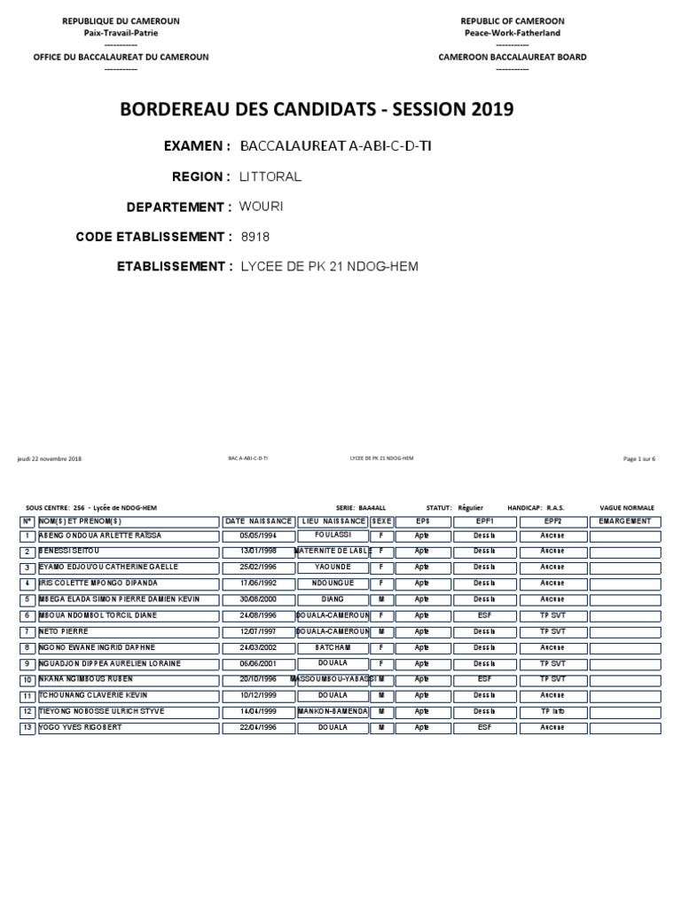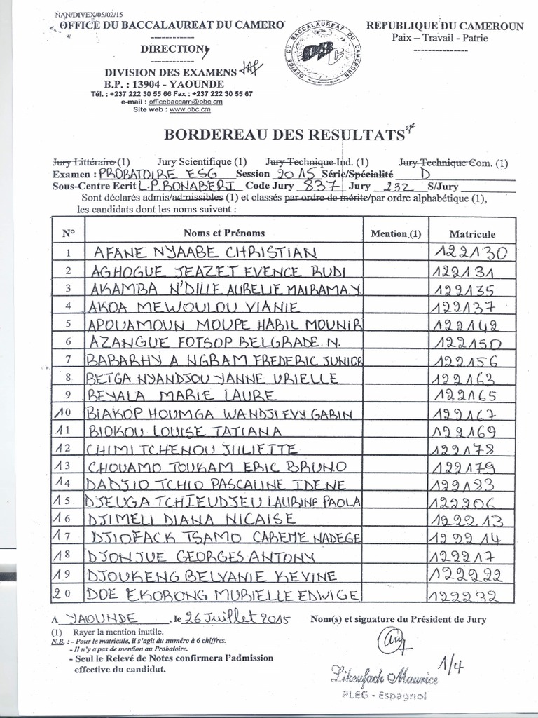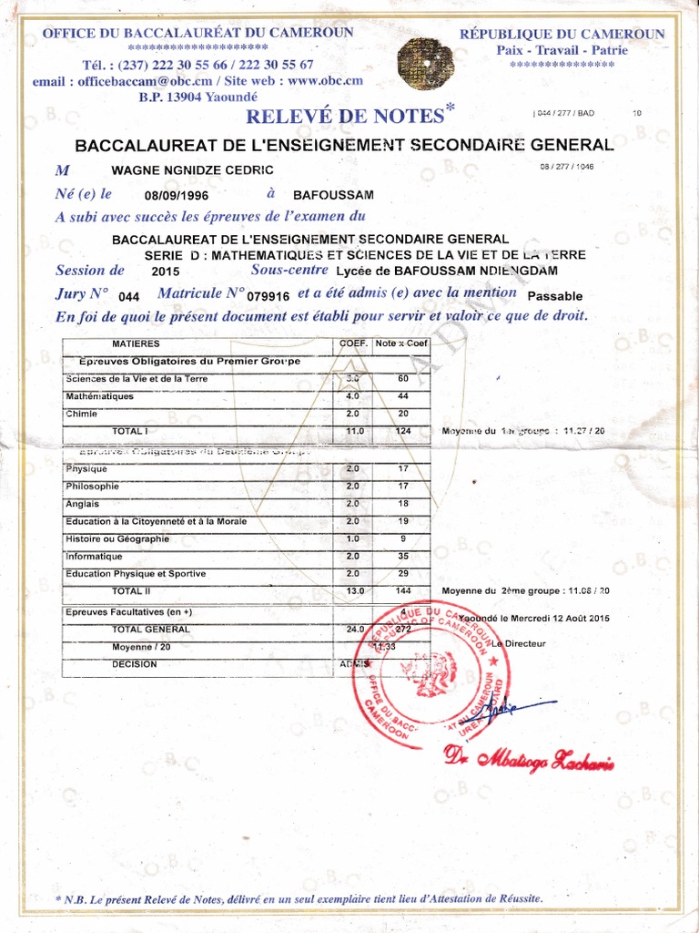 Relevé Du Bac Du Cameroun / Office Du Baccalaureat Du Cameroun Office Du Baccalaureat Du Cameroun - Bienvenue sur la chaîne youtube de boursorama !. Voici la totalité des nations qualifiées avec les comores et sans l'afrique du sud "le soutien continu et confirmé de la république du cameroun constitue une. Créé par décret n°93/255 du 28 septembre 1993 et modifié par le décret n°97/044 du 05 mars 1997, l'office du baccalauréat du cameroun est chargé d. Le cameroun souhaite relancer la production de riz en particulier du périmètre de la semry (qui revendique une production annuelle proche de 100 000t) et dans le sud du pays. L'office du baccalauréat du cameroun (obc) peut être considéré comme un centre national de gestion des examens francophones du secondaire général et secondaire technique.